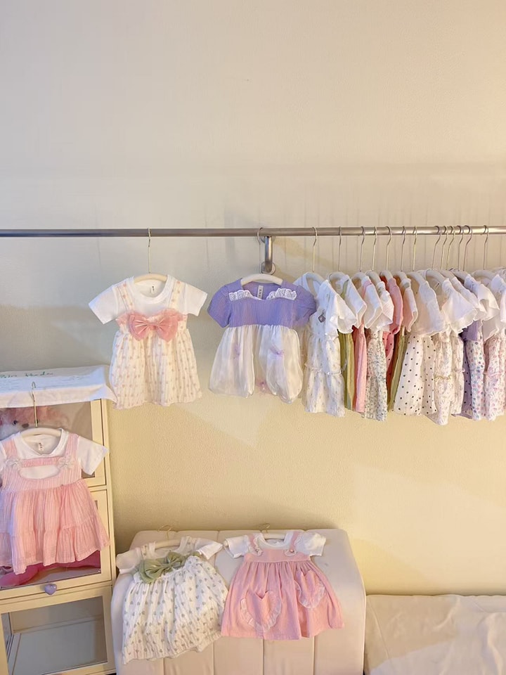 ชุดกระโปรงเอี๊ยม ลายดอกไม้เล็ก เอี๋ยมแต่งโบว์กระต่าย น่ารัก